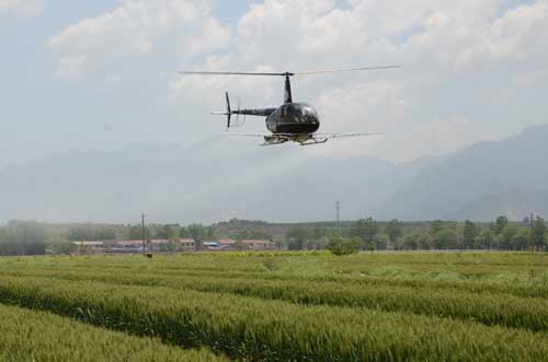 5月份是小麥形成產(chǎn)量的關(guān)鍵時期,也是病蟲害防治的關(guān)鍵時期。5月8日起,山西運城綠康實業(yè)有限公司利用專業(yè)化統(tǒng)防統(tǒng)治手段,在山西省聞喜、永濟、翼城、洪洞等地依次進(jìn)行小麥蚜蟲飛防實驗,這次飛防地點的選定主要是農(nóng)田面積比較集中,且周圍村莊相對稀疏,沒有過高建筑物的地方,非常適合飛機噴藥的田塊進(jìn)行。