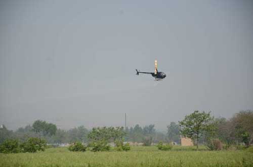 噴藥現(xiàn)場,在王總的指揮帶領(lǐng)下,飛防工作有條不紊的進(jìn)行著,大家都各司其職,盡職盡責(zé),我公司與其合作的青島翔龍通用航空公司,其噴藥直升機一次可攜帶300公斤藥液,兩個多小時可噴灑30000畝小麥,速度快,效率高,持效效果好,可有效解決防治力量不足、防治效率低等問題;還可以節(jié)約成本,飛防畝用打水量平均為40-50g/畝,大大節(jié)省了藥劑使用量和農(nóng)藥成本;飛防經(jīng)濟、******,可兼治多種病蟲害及蟲害,擁有廣闊的前景。