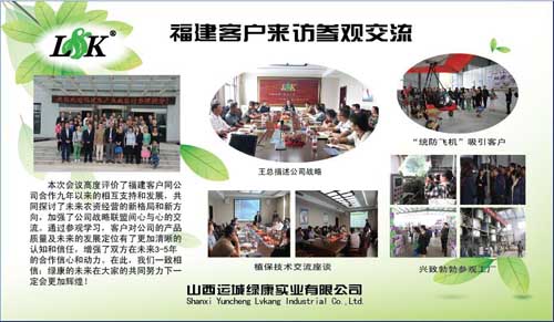 為加大客戶與公司之間的信任度,增加銷量,2014年9月23日,閔北區(qū)業(yè)務(wù)經(jīng)理陳鋒帶領(lǐng)福建客戶來綠康公司參觀學(xué)習(xí),由技術(shù)總監(jiān)薛工帶領(lǐng)大家參觀生產(chǎn)工廠。首先參觀了我公司用于統(tǒng)防統(tǒng)治的美國三角翼,為了貼合******統(tǒng)防統(tǒng)治的植保理念,為了提高防治病蟲害效果,綠康公司于2012年成立了統(tǒng)防統(tǒng)治合作社,并購置美國原裝進口塔瑞斯MA-34R528XB農(nóng)藥噴灑飛機五架。客戶在參觀飛機后對公司先進的植保理念表示贊賞。